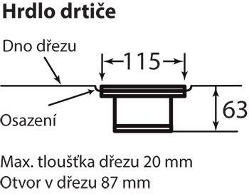 Max. tloušťka dřezu 20 mm