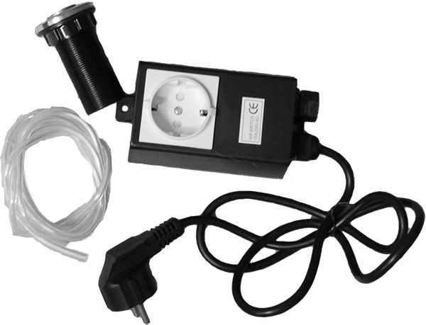 - krabice se spínačem má kabel délky 100 cm se zástrčkou do el. síťe, na krabici je zásuvka pro připojení drtiče odpadu.